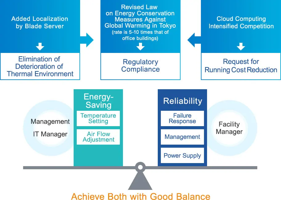 - We want to secure reliability (We want to achieve both energy conservation and reliability at the same time as solving our thermal load problems)