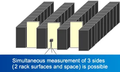 Como parte de nuestro servicio, realizamos simulaciones mediante análisis CFD, pero además visualizamos la distribución de temperatura convirtiéndola en 3D con una cámara térmica y un filtro especial, basándonos en mediciones reales del entorno de la sala de servidores para que los ingenieros de TI puedan comprender fácilmente la situación.