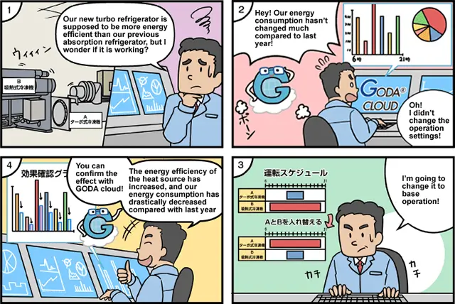 GODA® Cloud es una herramienta de recopilación y análisis de datos que captura información de operación en el equipo de monitoreo central de un edificio, analiza la operación desde múltiples ángulos en poco tiempo y permite una operación óptima de ahorro de energía.